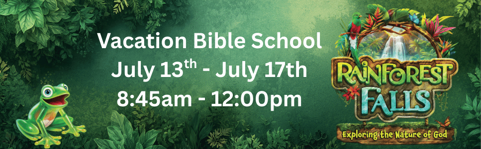 VBS starts daily at 8:45am and ends at 12:15pm each day. Registration fee is $30 per child and includes a T-shirt, Bible Buddy Brag Tags, snack, and drinks each day. (Scholarship applications are available if needed)